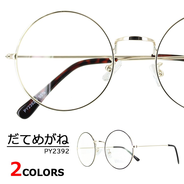伊達メガネ だてめがね ダテ メンズ レディース おしゃれ 眼鏡 クリアレンズ ラウンド 丸眼鏡 メタルフレーム UVカット PY2392 定形外選択で送料無料