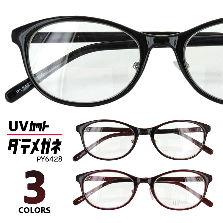 伊達メガネ だてめがね ダテ メンズ レディース おしゃれ 眼鏡 クリアレンズ フォックス UVカット セルフレーム py6428 3カラー クリングス鼻パッド