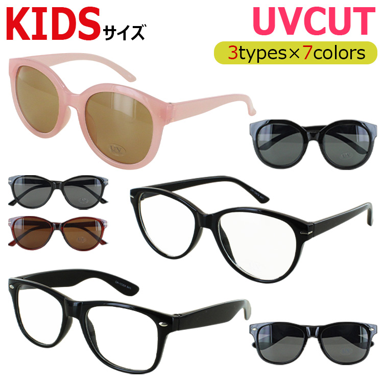 キッズ サングラス 伊達メガネ 子供用 こども UVカット CH-1246 ボストン CH-1247 キャッツ CH-1230 ウェリントン カラーレンズ クリアレンズ 女の子 小学生