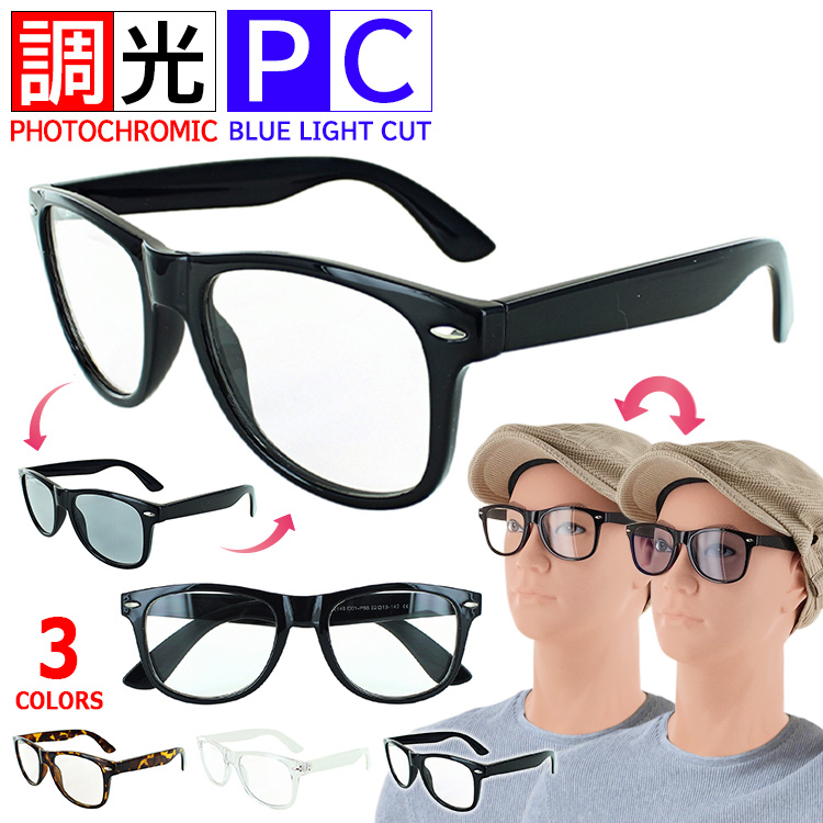 調光 ブルーライトカット メガネ PC眼鏡 vx2140c 伊達めがね おしゃれ 度なし クリアレンズ メンズ レディース uvカット ウェリントン 沖縄以外送料無料