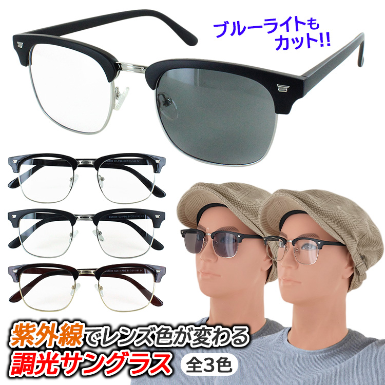 ブルーライトカットメガネ 調光サングラス PC眼鏡 伊達めがね ダテメガネ おしゃれ 度なし クリアレンズ サーモントブロー メンズ レディース uvカット