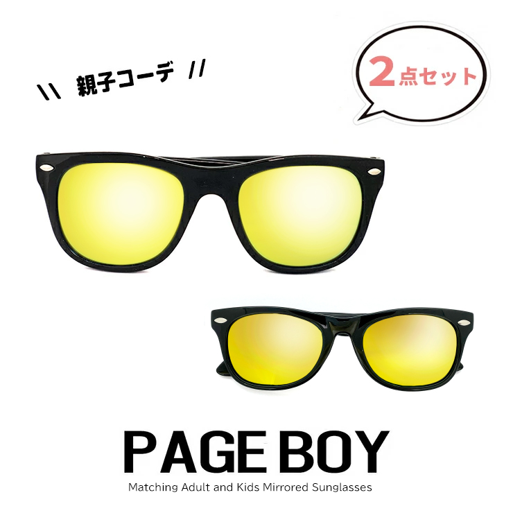 2点セット 親子 ペアルック サングラス ブラック ウェリントン型 zs8128 py1139 ミラーレンズ UVカット 親子おそろい 親子コーデ 黒 【定形外郵便 対応】
