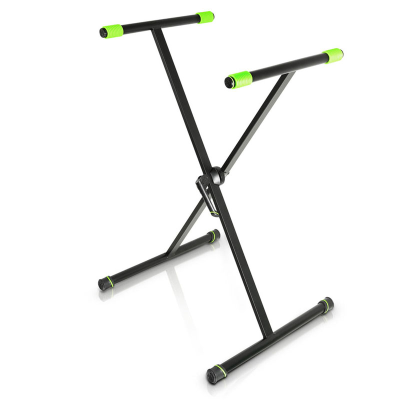 ギザギザの歯をかみ合わせるクランプで開閉具合を自由に調整できる安定感と剛性を両立したシングルレッグ・キーボードスタンドです。