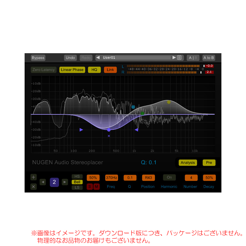 高品位なリニア・フェイズ・アルゴリズムによる、透明なステレオ定位の調整をお楽しみください。