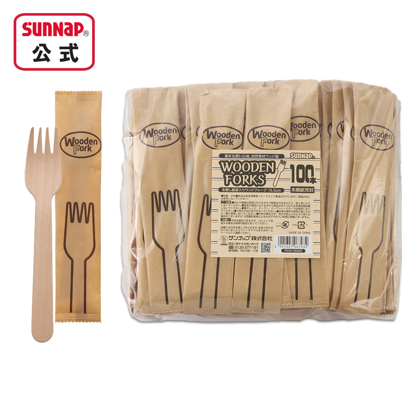 紙袋入り 使い捨て ウッドフォーク 100本入 【 フォーク 木製 アウトドア 完封 個包装 テイクアウト スイーツ 持ち帰り 試食 テイスティング 】