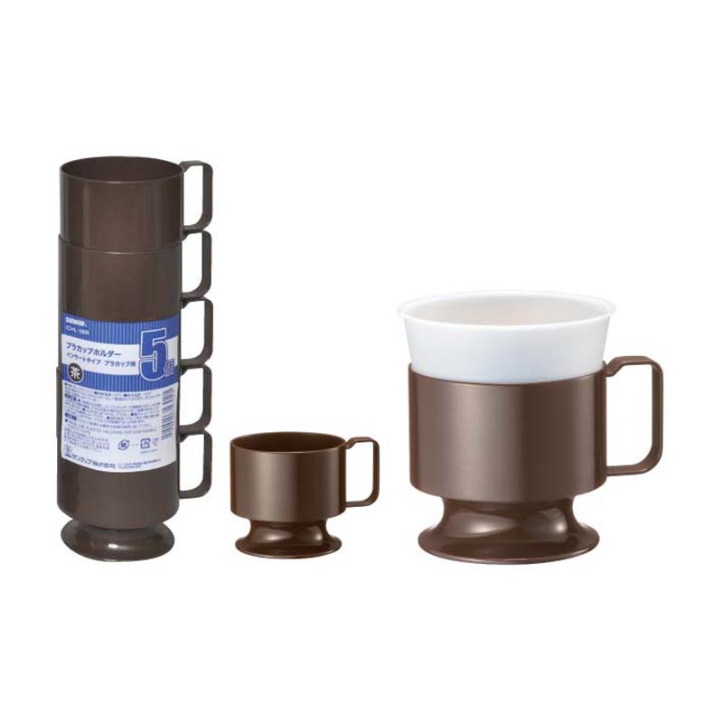 プラ カップホルダー ブラウン 5個入 【 インサートカップホルダー 持ち運び オフィス サンナップ 日本製 】