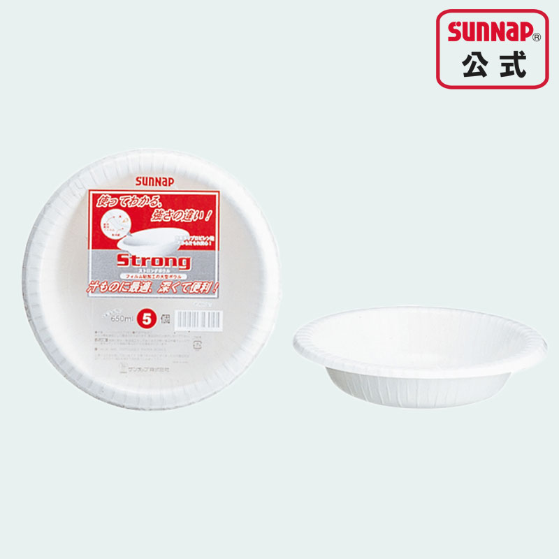 ストロングボウル 650ml 5枚入り 【 紙ボウル ペーパーボウル strong 日本製 紙器 使い捨て 丈夫 皿 取り分け皿 防災グッズ 】