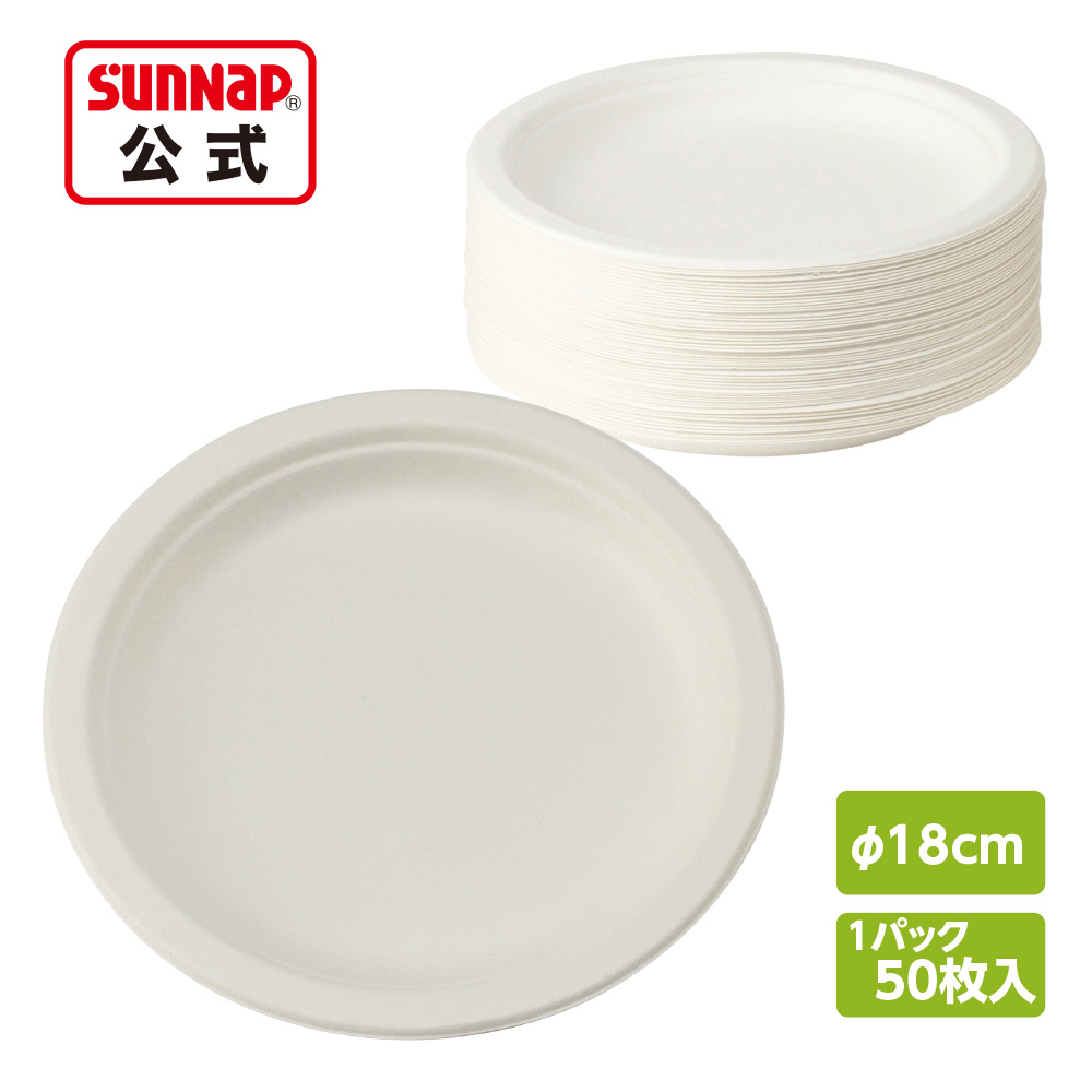 サトウキビモールド プレート 18cm 50枚入 【 紙皿 ペーパープレート バガスモールド 非木材 増量 業務用 安全品質 防災グッズ 】
