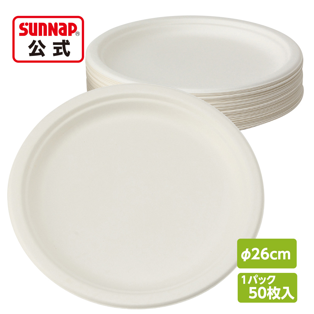 さとうきびモールド プレート 26cm 50枚入 【 紙皿 ペーパープレート バガスモールド 非木材 増量 業務用 安全品質 防災グッズ 】