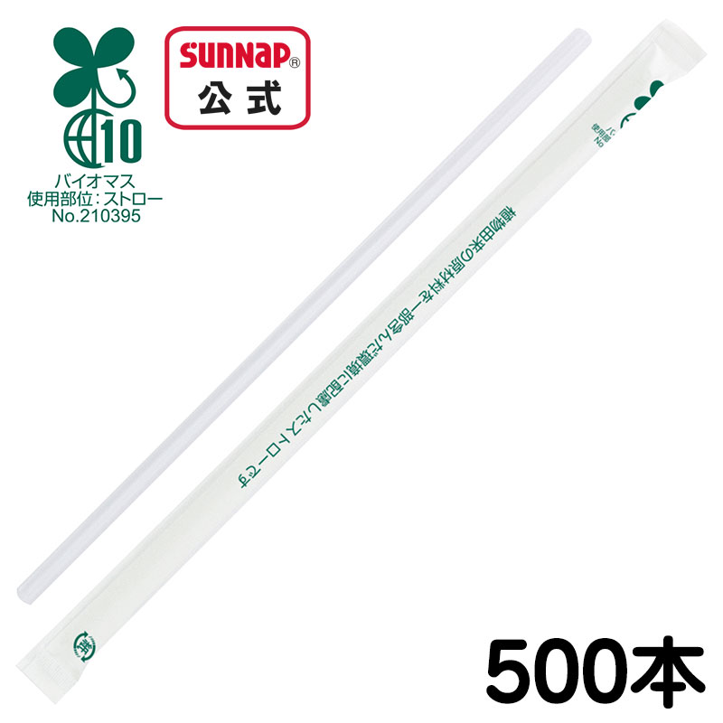 バイオマスプラ ストロー 袋入 500本入 Φ6mm×21cm 【 ストレートストロー バイオマスプラスチック 業務用 カフェ 個包装 】