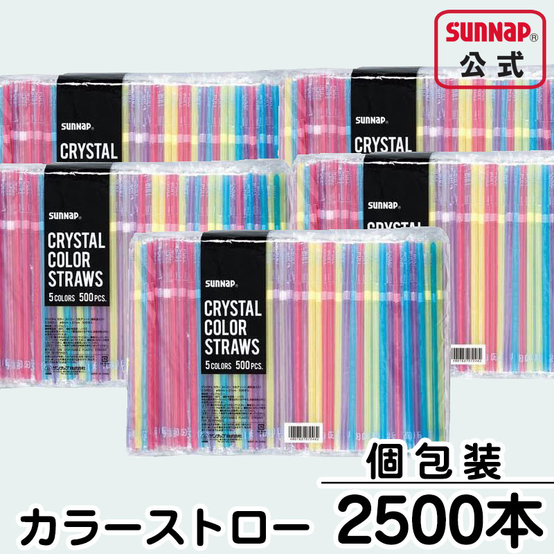 曲がるカラー ストロー 【 個包装 2500本入(500本×5袋) 業務用 長いストロー 安全品質 カラフルストロー 徳用 S-500CC 】