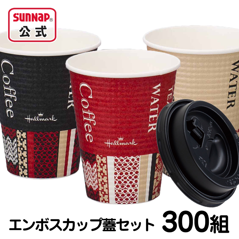 cuplid HM エンボスカップ 蓋セット 260ml 9oz【 300組 蓋つき紙コップ エンボス ホールマーク 断熱コップ 断熱性 耐熱性 日本製 国産 】