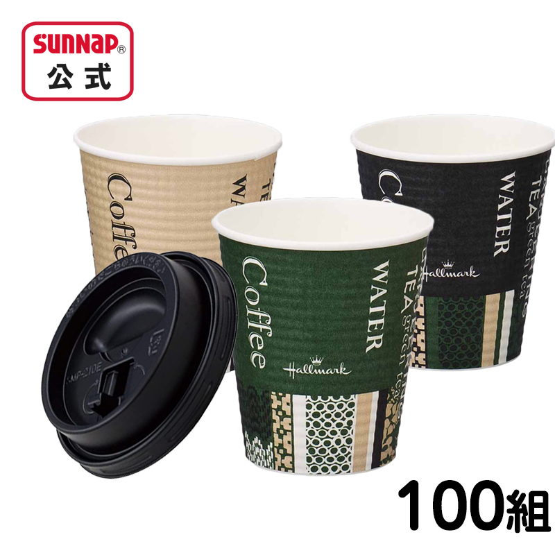 cuplid HM エンボスカップ ふた黒セット 210ml 7oz 100組 【 エンボス 紙コップ 断熱 断熱コップ 耐熱性カップ ホールマーク 日本製 国産 C2150EC 】