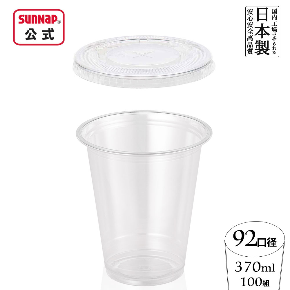 cuplid92口径 PET カフェ クリアカップ 蓋セット 370ml 12oz 100組 【 アイスドリンク 透明コップ プラカップ 業務用 テイクアウト 持ち帰り 日本製 】