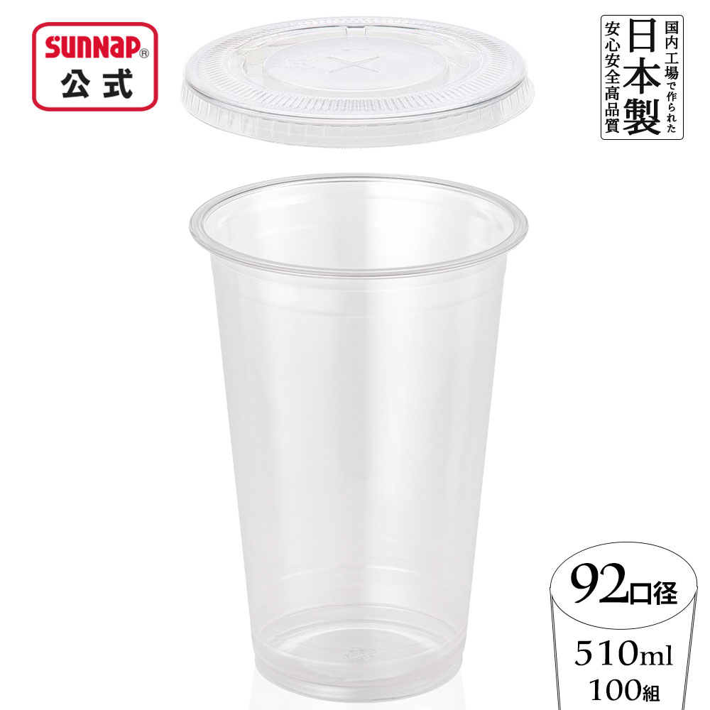 cuplid92口径 PET カフェクリアカップ 蓋セット 510ml 17oz 100組 【 アイスドリンク 透明コップ プラカップ 業務用 テイクアウト 持ち帰り 日本製 】
