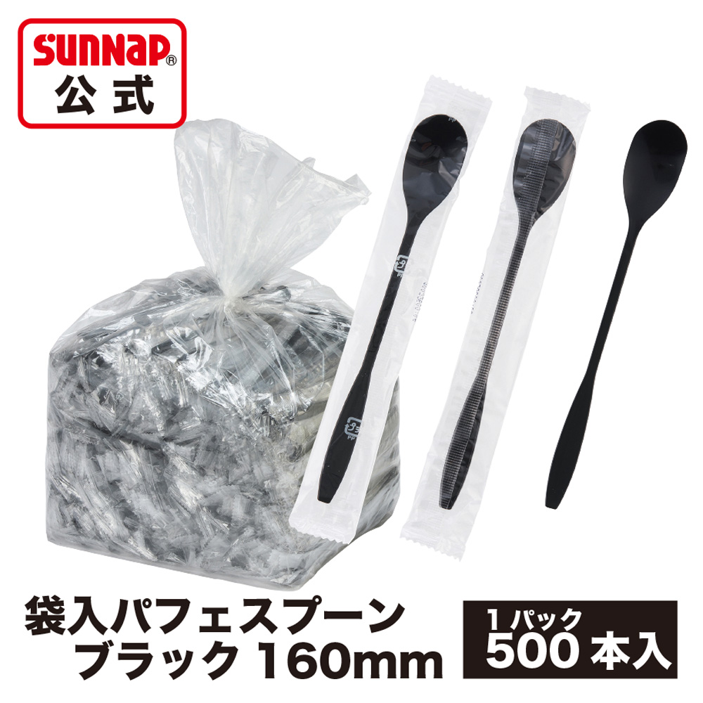 個包装 パフェスプーン ブラック 16cm 500本入 【パフェ フラッペ 業務用 アイス ロングマドラー スイーツ カトラリー】