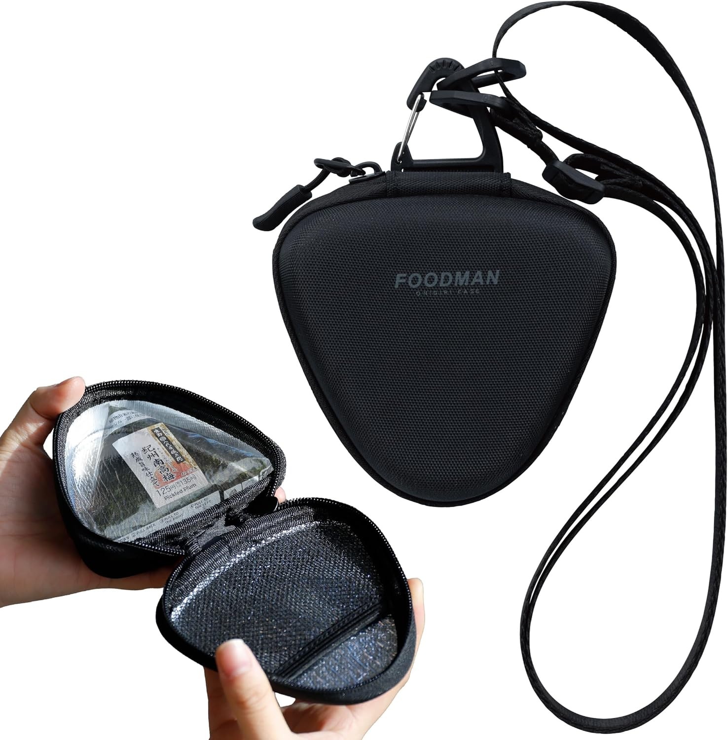 シービージャパン おにぎりケース 保冷 肩に掛けられる 脱着できるベルト 内面アルミ蒸着 保冷剤ポケット付き ブラック フードマン
