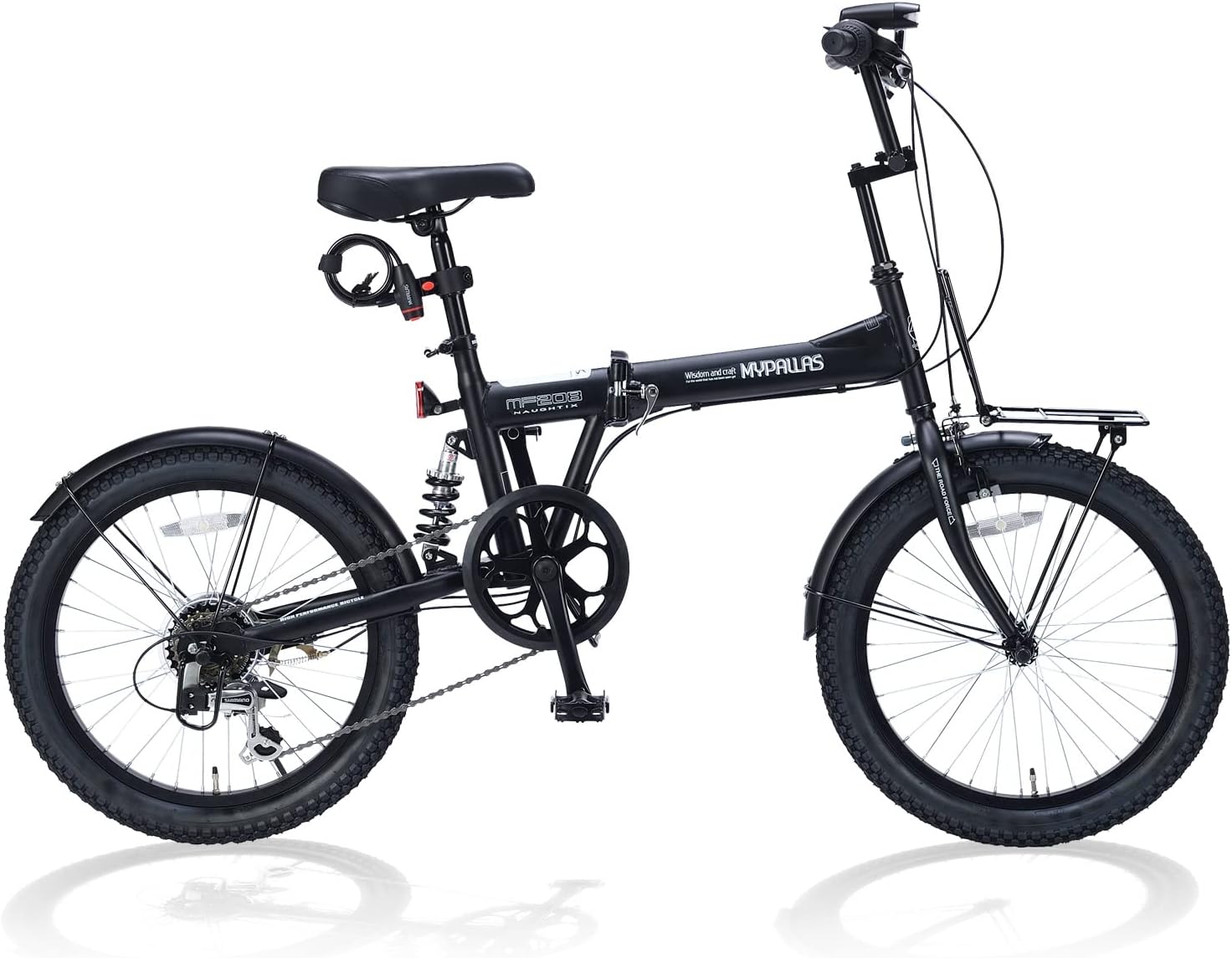マイパラス 折りたたみ自転車 20インチ MF208 NAUGHTIX マットブラック 折畳セミファット20・6SP・リアサス おしゃれ 変速ギア付き【本州のみ送料無料】