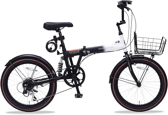 マイパラス 折畳セミファットバイク 20インチ 6段ギア リアサスペンション LEDライト フロントキャリア 自転車 MF208SE ホワイトブラック【本州のみ送料無料】