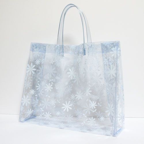 フラワー ビニールバッグ Mサイズ ホワイト 花柄【日本製】透明バッグ クリアバッグ おしゃれ メンズ レディース サウナ 事務 スポーツ ジム プール 海 温泉