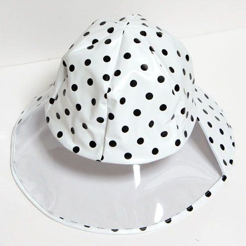 ★前ツバが透明なので雨の自転車の運転も視認性がよく安全です。★コンパクトに折りたためますので外出時の収納にも困りません。★あごゴム付なので風の強い日でも安心です。★おしゃれなドット柄レインハットです。