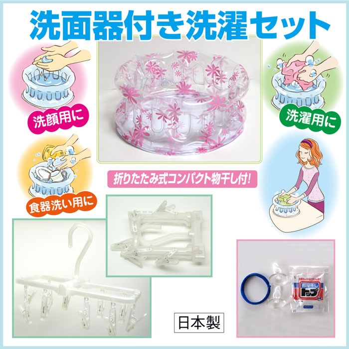 ハンディー 洗濯セット フラワーピンク 携帯用洗面器付き 日本製