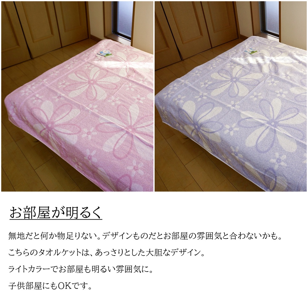 | 備考 | 【お部屋が明るく】 無地だと何足りない。デザインものだとお部屋の雰囲気と合わないかも。こちらのタオルケットは、あっさりとした大胆なデザイン。ライトカラーでお部屋も明るい雰囲気に。大人可愛いデザインで、子供部屋にもOKです。 【今治タオルブランド認定品】 無地だと何足りない。デザインものだとお部屋の雰囲気と合わないかも。こちらのタオルケットは、あっさりとした大胆なデザイン。ライトカラーでお部屋も明るい雰囲気に。大人可愛いデザインで、子供部屋にもOKです。 【普通のタオルケットとどう違うの?】 今治タオルブランドに認定されたタオルケットは、 製造過程に必ず水通しという工程が入ります。 いわゆるノリ落とし(パイルを織るまでの過程に染色、 糊付けが行われています。)が行われます。 吸水性を妨げるノリを落とすことで、お使い初めから、優れた吸水性を持つのです。 【優れた通気性・吸水性】 タオルケットの一番の魅力は快眠を考えた適度な通気性。寝汗も吸収してくれるので嫌なべたつき感がなく寝起きもすっきり爽快です。じめじめする季節や寝苦しい夏も快眠を促します。 【ご家庭で洗えます】 お洗濯でのご注意〜少量の水でのお洗濯はパイルを痛めることがございます。充分な水量でお洗濯してください。また、「柔軟剤の過度のご使用」「回転式乾燥機によるタンブラー乾燥」は摩擦による過度な毛羽立ち、または型崩れや縮みの原因となりますのでお避けください。 【正直なおつきあい】 タオルケットの性質上、パイルが飛び出しやすいです。(指のカサカサや、爪、衣類、などで引っかかったり、お洗濯などで、飛び出してしまうことがございます) パイルが飛び出してしまった場合は引っ張らず飛び出した部分をハサミでカットしてください。また、ご使用中やお洗濯中に毛羽が抜けることがありますが、製品上に問題はありません。お洗濯の際は、洗濯ネットをご使用ください。 ※画像について/実物に沿うよう撮影をしておりますが、撮影の角度(パイルの角度)、光量またはご覧のモニタにより色の相違感が生じます。何卒ご了承ください。 |
