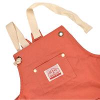 お腹に大きめのポケットが2つついたエプロン。サイズ調整も肩紐で結んで簡単。