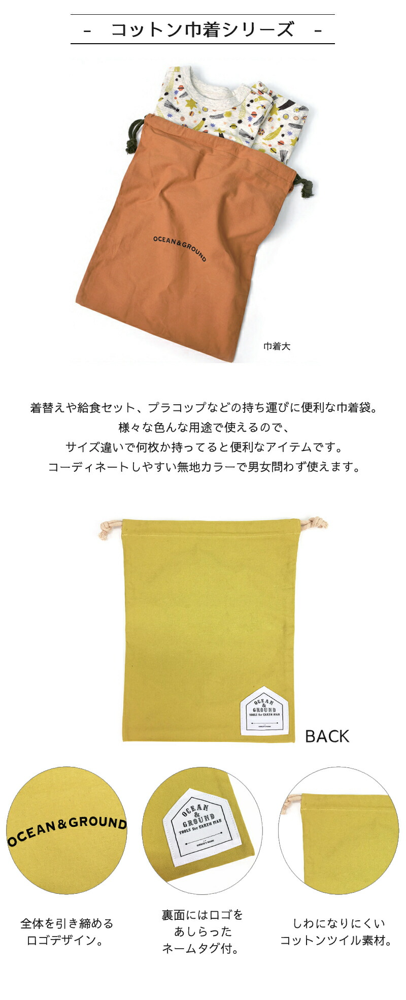 シンプルでおしゃれなキッズ雑貨ブランド『オーシャンアンドグラウンド』のコットン巾着。