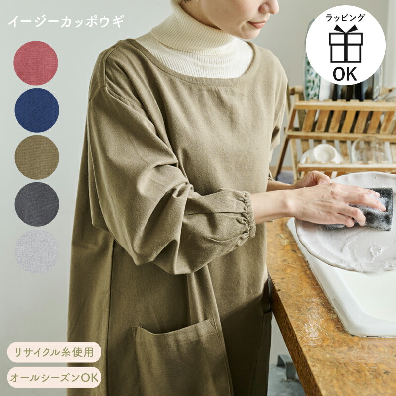 リサイクル糸を使用した無地カラー生地のかっぽう着。