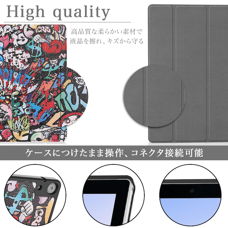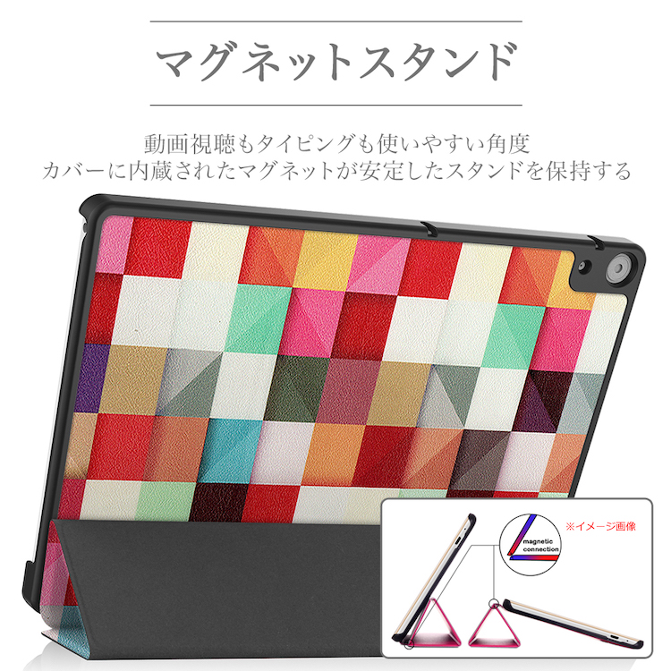 | 特徴 | 【ケース】 ■タブレットPCの薄さと重さを損なわないよう薄型・軽量設計のPUレザーケース!表は汚れや傷に強い良質PUレザー、裏地は触り心地の良い柔らかい素材(マイクロファイバー)を使用しており、タブレットPCを優しく守ってくれます。 ■カメラ撮影や各種ボタン操作、イヤホンの差し込み等はケースを閉じたままでも可能ですので、使い勝手も抜群です。 ■動画視聴、タイピングや読書に便利な2パターンスタンド機能がついておりますのでお好みの角度で楽しむことができます。 ■ケースの開閉はマグネット式なので、片手で簡単に開閉できます。また蓋がパカパカと開いててしまうことがありません。 ■オートスリープ機能付で無駄なバッテリー消費を防ぎます。 【ブルーライトカット強化ガラスフィルム】 ■目に優しく目の疲れ防止に役立つブルーライト防止強化ガラス(国産の旭硝子素材使用) ■一般的なフィルムより3倍強い表面強度:9H 表面強度は9Hで、一般的なフィルムより3倍の強度。カッターや鍵などの鋭利なものとの摩擦にも傷にならない程、強力な表面強度を持っています。 ■油分や指紋などの汚れに強いオレオフォビックコーティング処理 ガラス表面にはオレオフォビックコーティングがされているので、油汚れと指紋が付きにくく、またふき取りやすいのが特徴です。 ■鮮明な画質と柔らかなタッチ感 化学強化処理されたガラスは、透過率が高く非常にクリアです。特殊なシリコン粘着剤を使用しているので貼り付けやすく、ソフトなタッチ感を楽しめます。 ■飛散防止 過度な圧力等により万一割れてしまった場合でも、細かい破片になり尖らない特性があるので、一般的な通常のガラス製品よりも安全です。 |