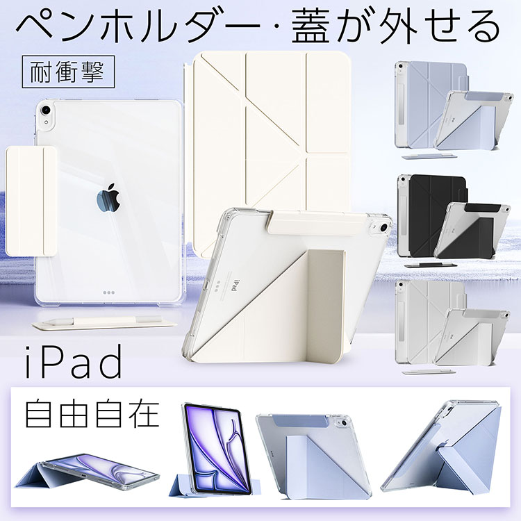 | 特徴 | ■ シンプルの極。透明感と機能美を両立 フラットで美しいデザインに、使いやすさを兼ね備えた新感覚のiPadケース。 ■ マグネット着脱式ペンホルダー 使うときだけ装着、不要なときは外してスッキリ。Apple Pencilをしっかり保護し、紛失も防止。 ■ マグネット内蔵カバー 蓋を閉じると自動スリープ、開ければすぐ起動。カバンの中でもピタッと固定され安心。 ■ 耐衝撃×薄型設計 二重エアクッションで落下からしっかり保護。厚みを抑えつつも大切な端末を守ります。 ■ 精密設計で快適操作 カメラレンズ保護設計、正確な開口部で音やボタン操作を妨げません。 ■ 自由自在のスタンド機能 複数角度でしっかり固定。動画視聴、タイピング、ゲームも快適。 ■ 豊富なカラーバリエーション グレー/ライトパープル/クリーム/ブラックの4色展開。 |