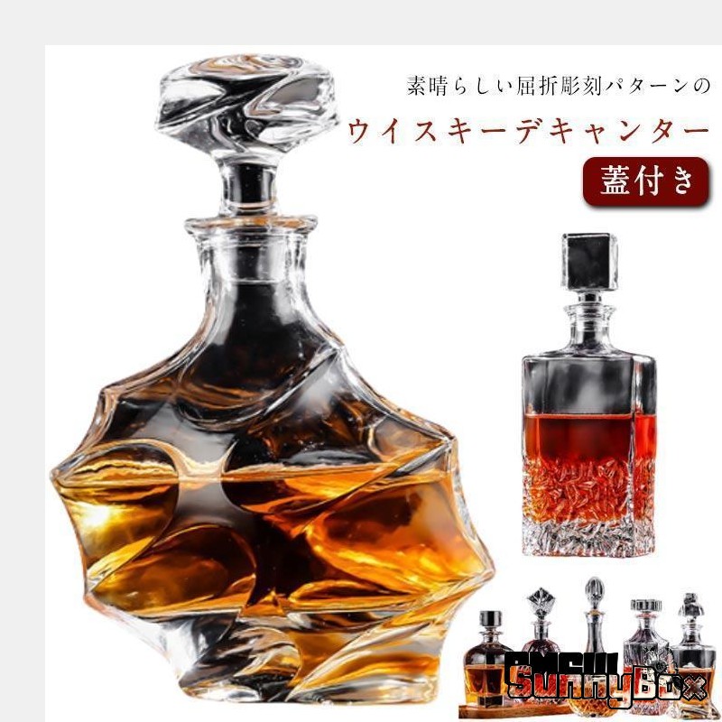 ガラス ウイスキーデカンタ 彫刻入り ウイスキーデキャンター 蓋付き デキャンタ ワインボトル アルコール用デキャンター 酒用デキャンター テキーラデ爆買