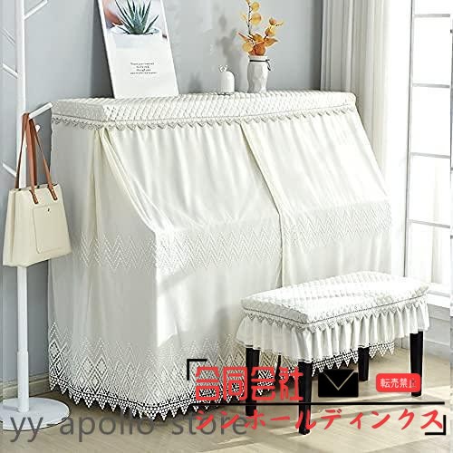 ピアノカバー アップライト カバー 標準直立型ピアノ用 電子ピアノ フルカバー おしゃれ シンプル 北欧 レース 優雅 ピアノ掛け 防塵カバー (ホワイト ピ