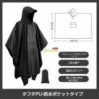 【人気】レインコート 男女兼用 ケープ型 大きめつば 防水ポケット PUコーティング 軽量 撥水収納袋付き 天幕 シート兼用 通勤 アウトドア キャンプ用