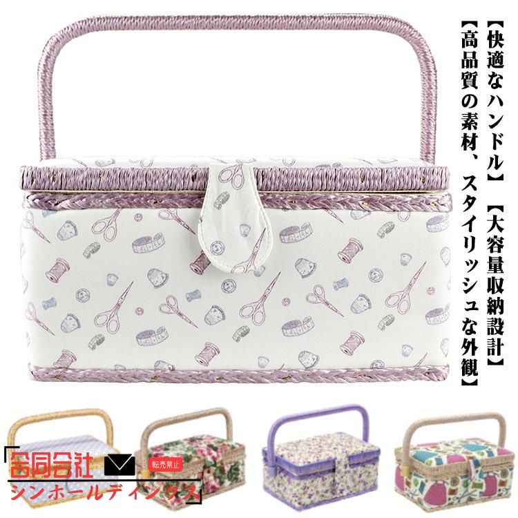 ソーイングボックス 裁縫箱 手芸箱 北欧 道具箱 縫製バスケット 花柄 収納ケース 持ち手式 木製 収納BOX かわいい 家庭用 小物入れ ミシン糸