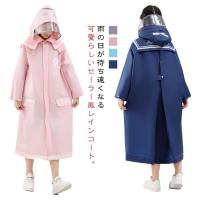 完全防水 レインコート キッズ ランドセル対応 かわいい セーラー襟 女の子 小学生子供用 リュック バックパック 対応 撥水 カッパ 合羽 雨具 膝