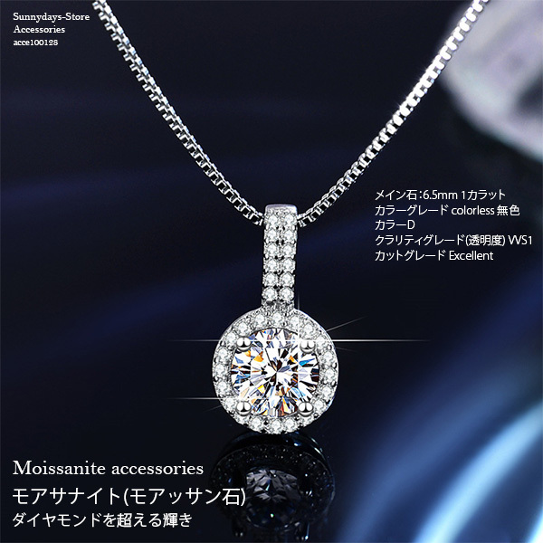 モアッサナイト ネックレス 一粒 Dカラー 1カラット エクセレント カット 無色 ラウンドブリリアント ルースジェムストーン VVS1 結婚式 披露宴 母の日 2025
