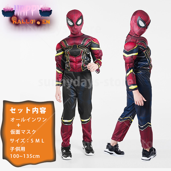 スパイダーマン 子供服 コスプレ 衣装 マスク 付き ハロウィン コスプレ 仮装 子供 男 キッズ マッチョ アイアン スパイダー Iron Spider 誕生日 クリスマス 服