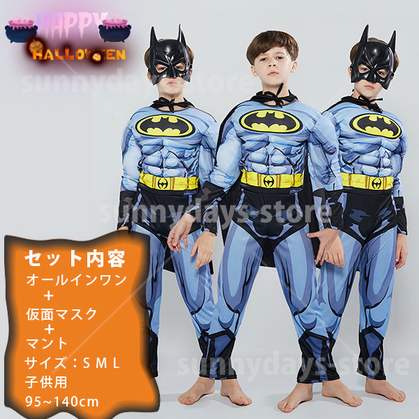 バットマン コスプレ 衣装 マスク 付き Batman ハロウィン コスプレ 仮装 子供 男の子 キッズ クリスマス ハロウィーン 誕生日 演出 プレゼント コスチューム 服