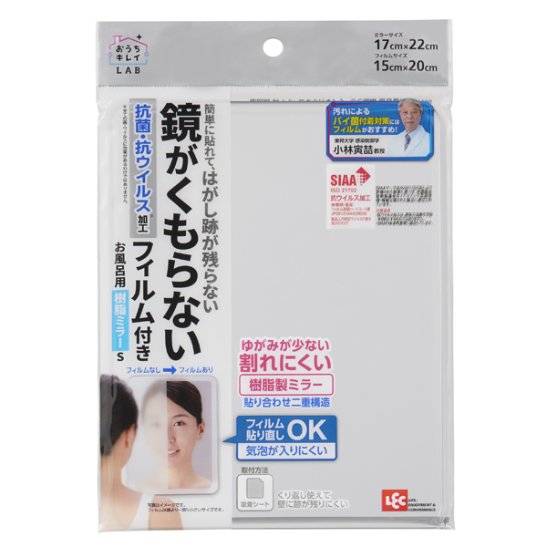 風呂 鏡 曇り止め フィルム付 ミラー S 鏡 17×22cm 樹脂 レック 抗菌 抗ウイルス 貼り直しOK ゆがみが少なく割れにくい (M)