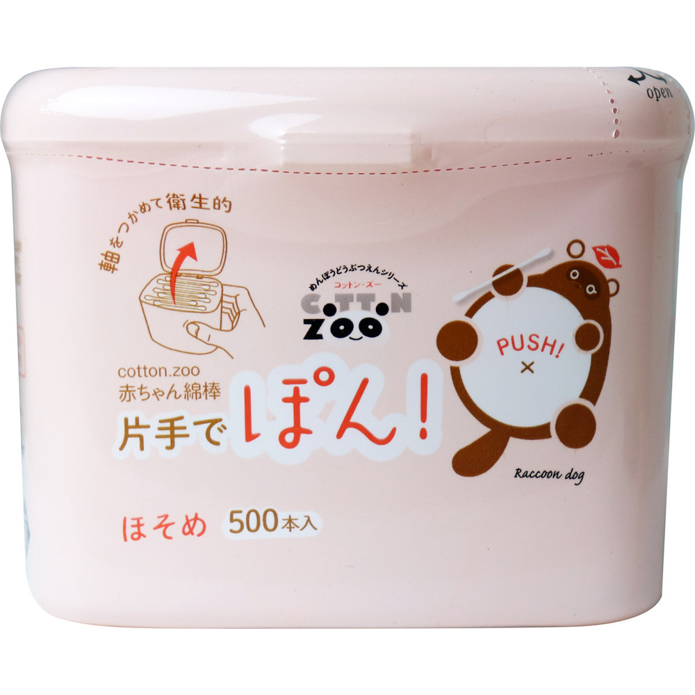 綿棒 細い 赤ちゃん コットンZOO 赤ちゃん綿棒 片手でぽん ほそめ 500本入 (K)