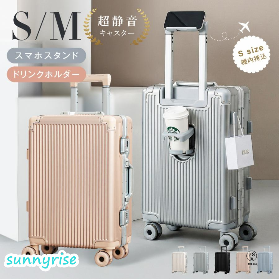 スーツケース フレームタイプ 機内持込可能 S/Mサイズ 多機能 キャリーケース カップホルダー スマホスタンド フック付き 軽量 360度回転 大容量 旅行 sc902