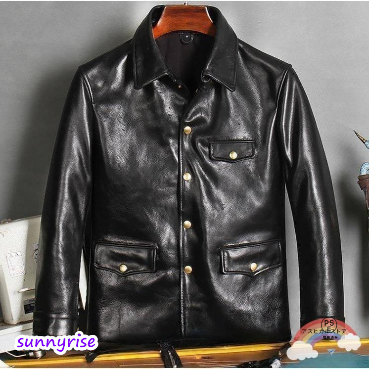 茶芯ホースハイド ドライビングコート レザージャケット サイズ選択可 カーコート ブレーキマン オイルワックスレザー 牛革