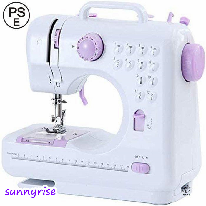 電動ミシン コンパクト 小型ミシン 家庭用ミシン 初心者 12種類の縫い目 フットコントローラー LED手元ランプ付き ACアダプタと単三電池