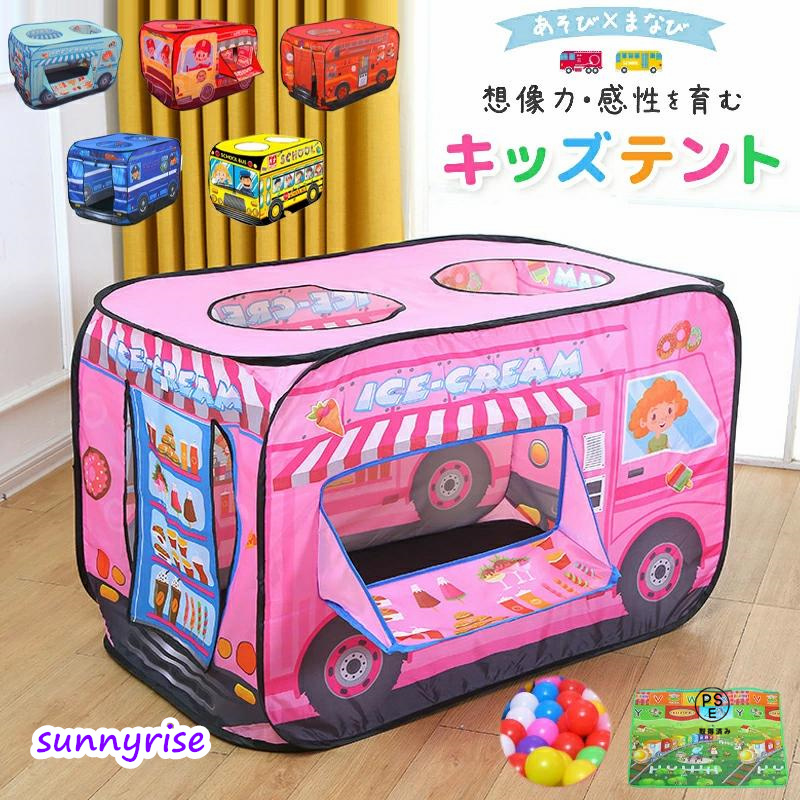 キッズテント バス 子供用テント ポップアップ 室内 知育玩具 簡単組み立て プレイハウス 男の子 女の子 働く車 消防車 パトカー スクールバス アイスクリーム
