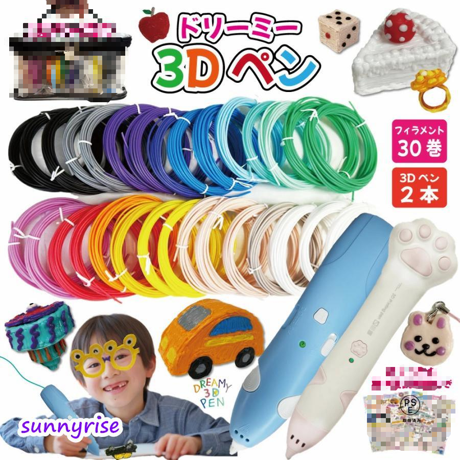 3Dペン ペン2本 フィラメント 5m巻 30個 大容量 お得 ドリーミー3Dペン セット 子供 3Dアートペン 芯 本体 肉球 知育玩具 低温 ケース バッグ