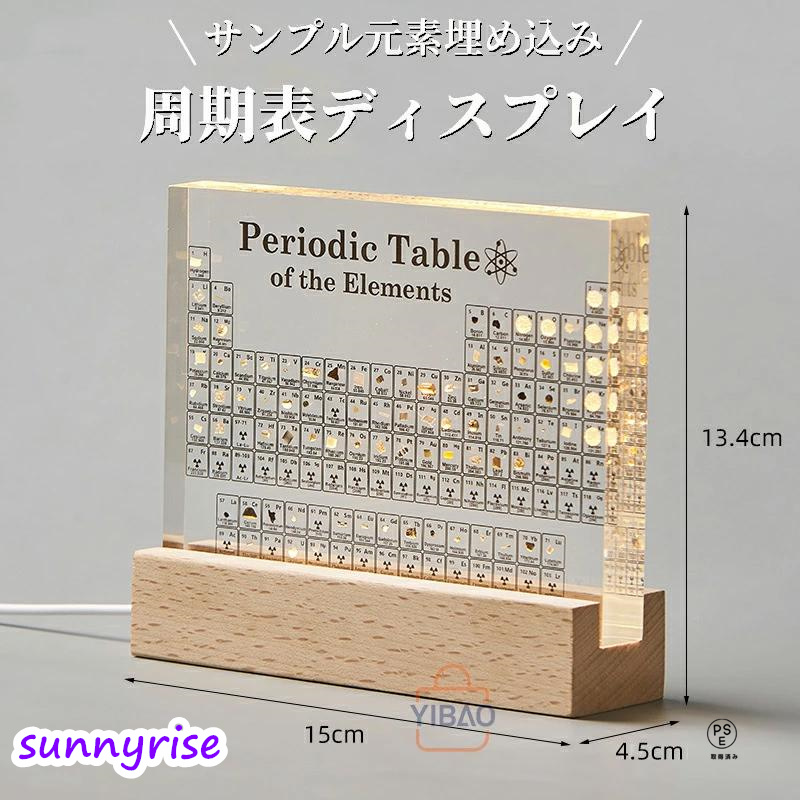 元素周期表 実物実際の元素の周期表 83種実物 元素入り アクリル 周期表 ディスプレイ 化学 元素記号 元素表 一覧 木製LEDベース付き15*11.4*2 cm 学習ツール 学用品 教育 学校