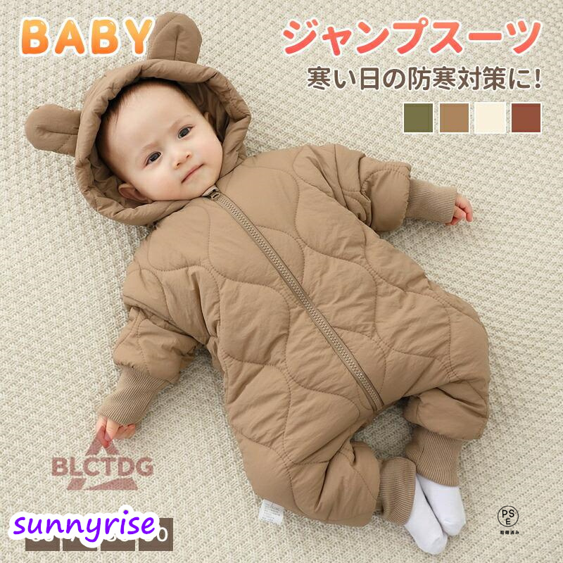 ジャンプスーツ ベビー カバーオール ベビー服 ロンパース 厚手 あったか 赤ちゃんアウター 秋冬 防寒対策 女の子 男の子 前開き 着替え便利 子供服 66 73 80 90