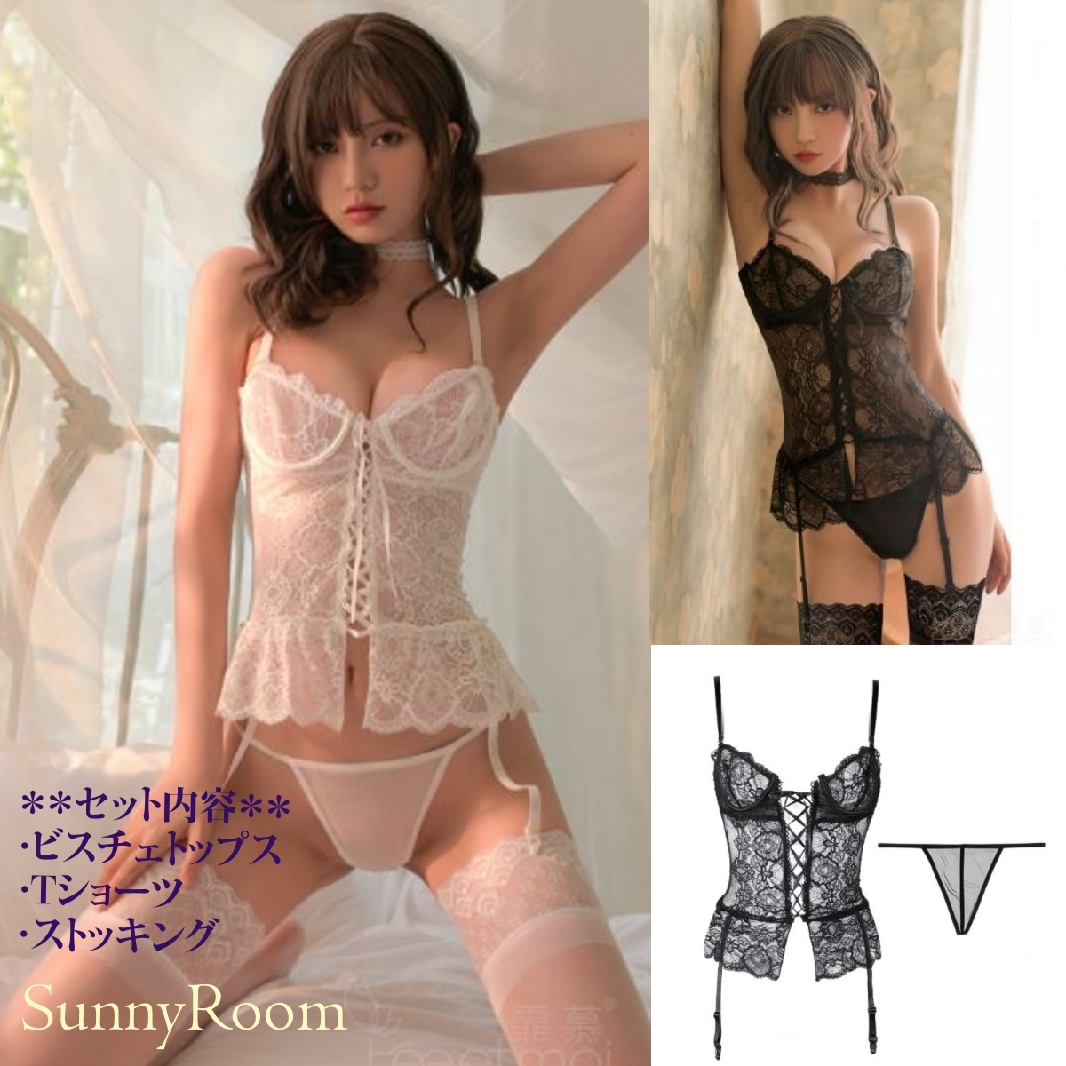 魅惑のビスチェランジェリーセットです。見た瞬間から目を奪われるほどの高クオリティー!ボディーラインが綺麗に見えるランジェリーセットです♪
